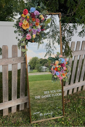 Here, we will decide what flowers you would like! That will include types, colors, sizes and location. Where you choose to put your flowers on your mirror could affect the size of flowers and greenery that match best. Prices will vary based on location and how many colors. This will be the most personalized element in the process, and something we will talk and plan together.